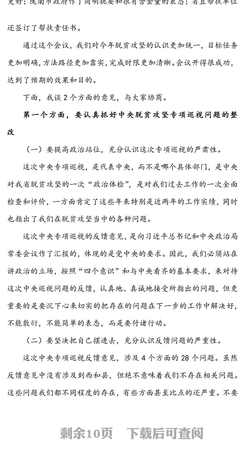 在省政協脫貧攻堅幫扶工作20XX年第一次協調推進會暨巡視整改促進會上的講話,脫貧攻堅,公文范例,領導述職報告,機關公文寫作 Array