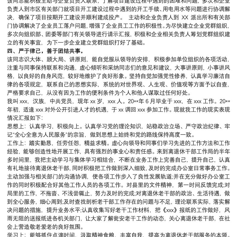 【個人表現材料范文】干部個人表現材料3篇 干部個人現實表現材料包含