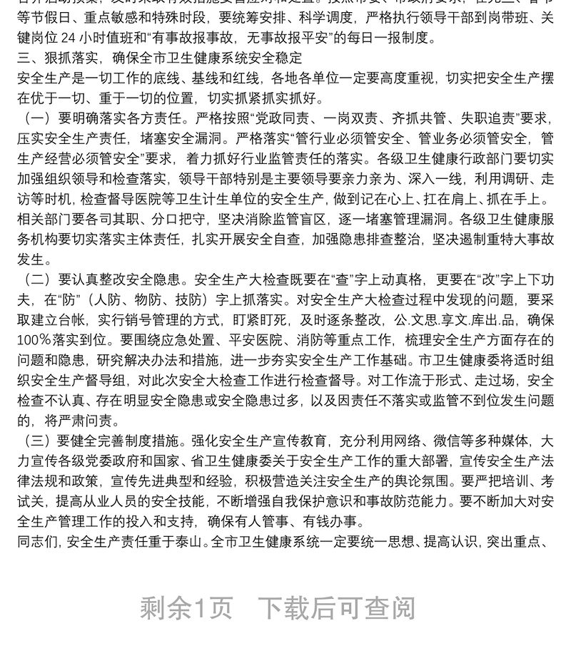 工圖網提供在全市衛生健康系統安全生產會議上的講話供會員免費下載。更多精彩黨課PPT素材,盡在工圖網。