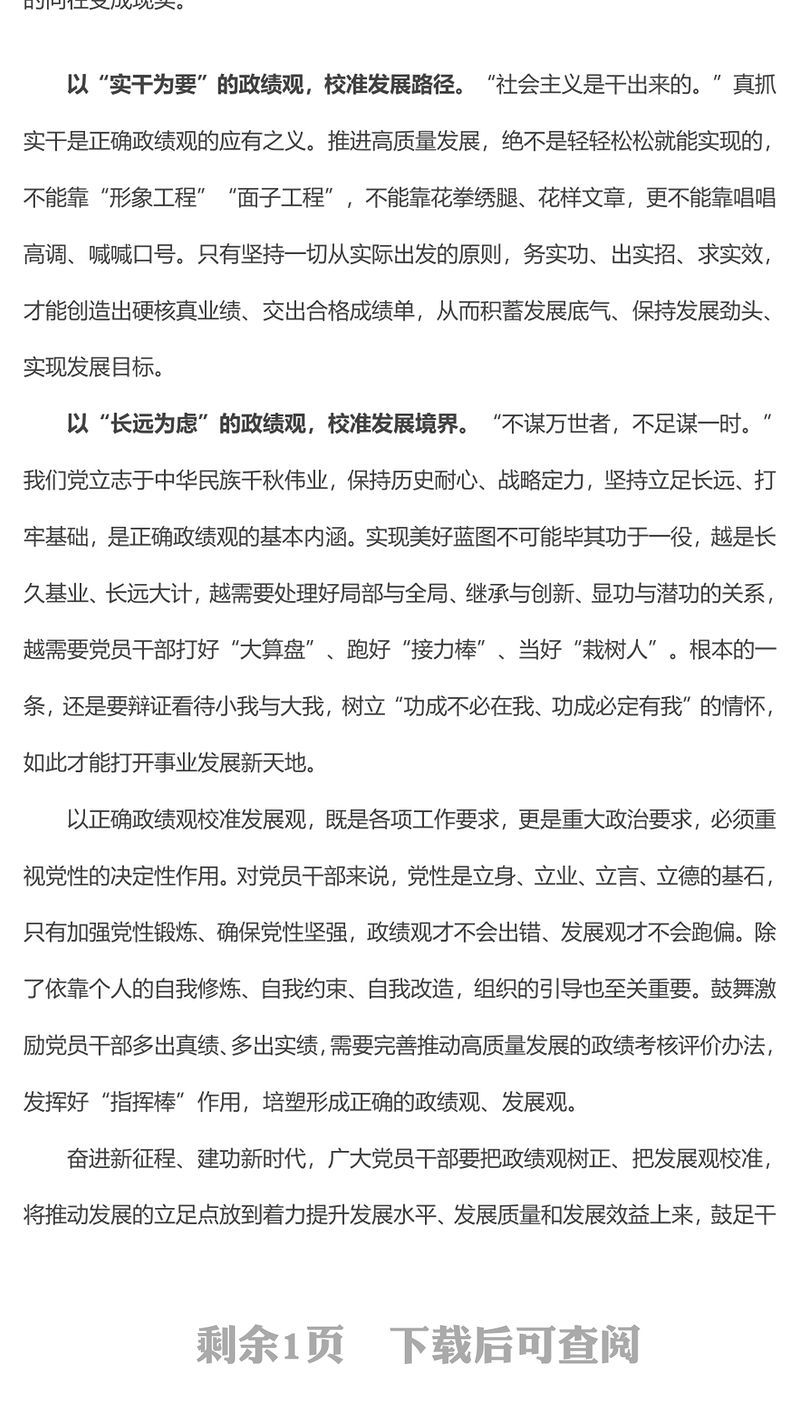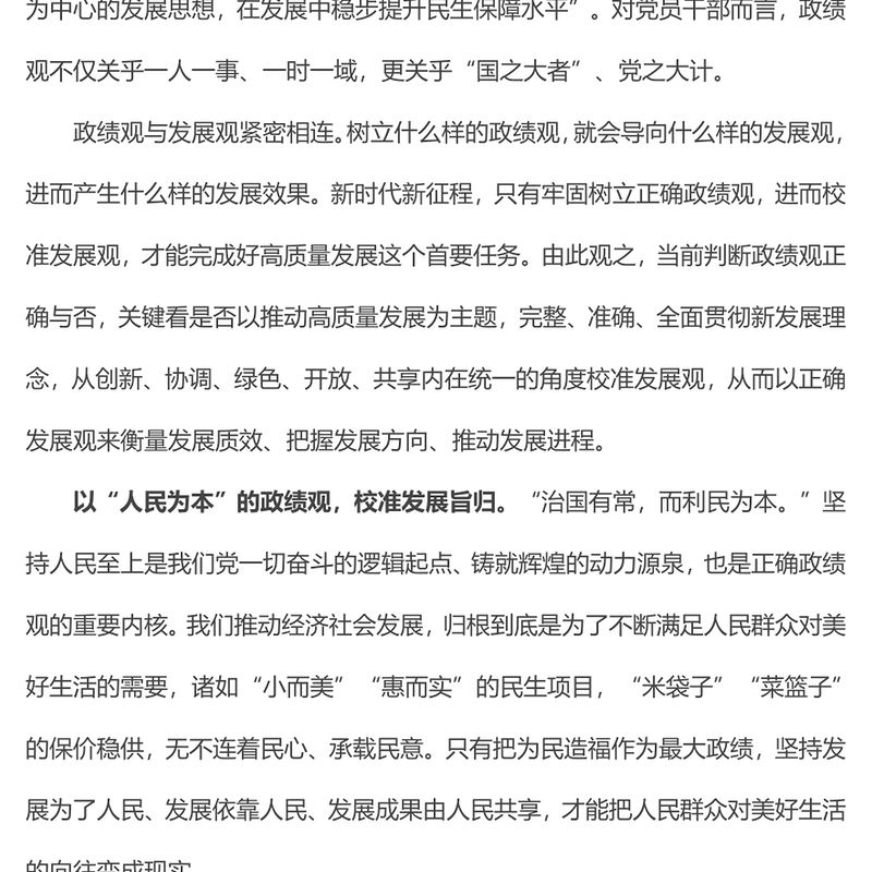 黨課講稿 > 以正確政績觀校準發展觀PPT紅色簡潔黨員干部教育專題黨課(講稿).DOCX