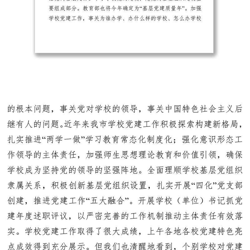 在全市學校黨建工作現場推進會上的講話公文范文