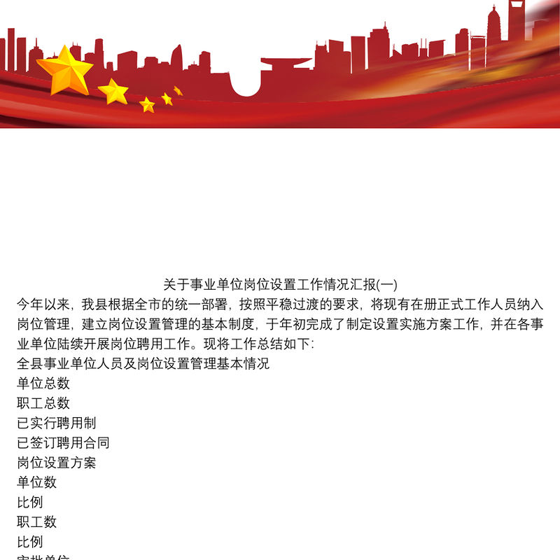 工圖網提供關于全縣事業單位崗位設置工作情況匯報材料三篇供會員免費下載。更多精彩黨課PPT素材,盡在工圖網。