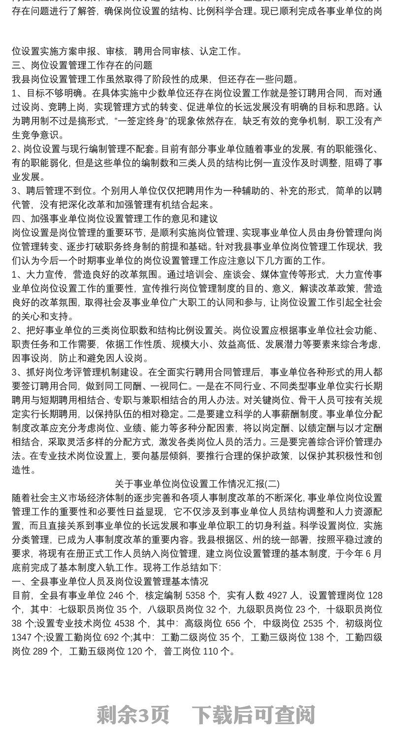 關于全縣事業單位崗位設置工作情況匯報材料三篇 Array