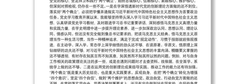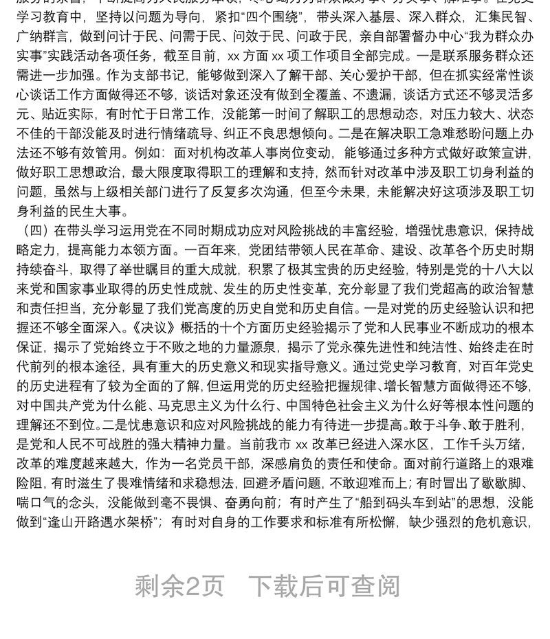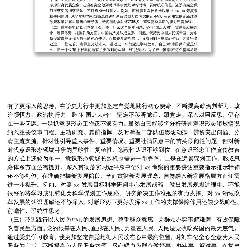公司黨史學習教育五個帶頭專題民主生活會個人對照檢查材料包含