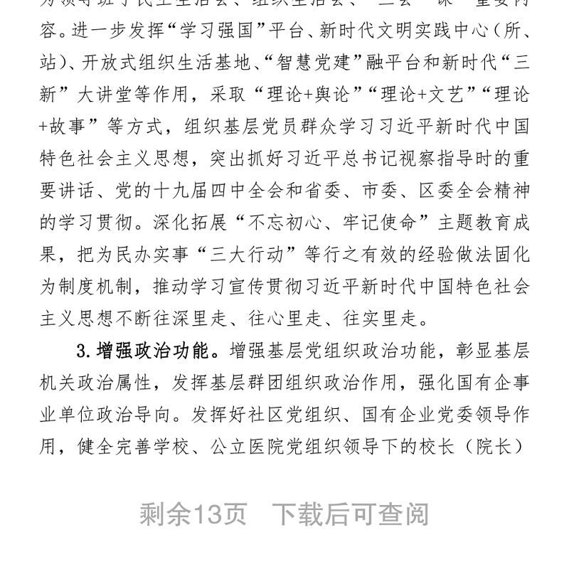 實施強根固魂六大工程高質量提升國有企業黨建工作方案國企黨建包含