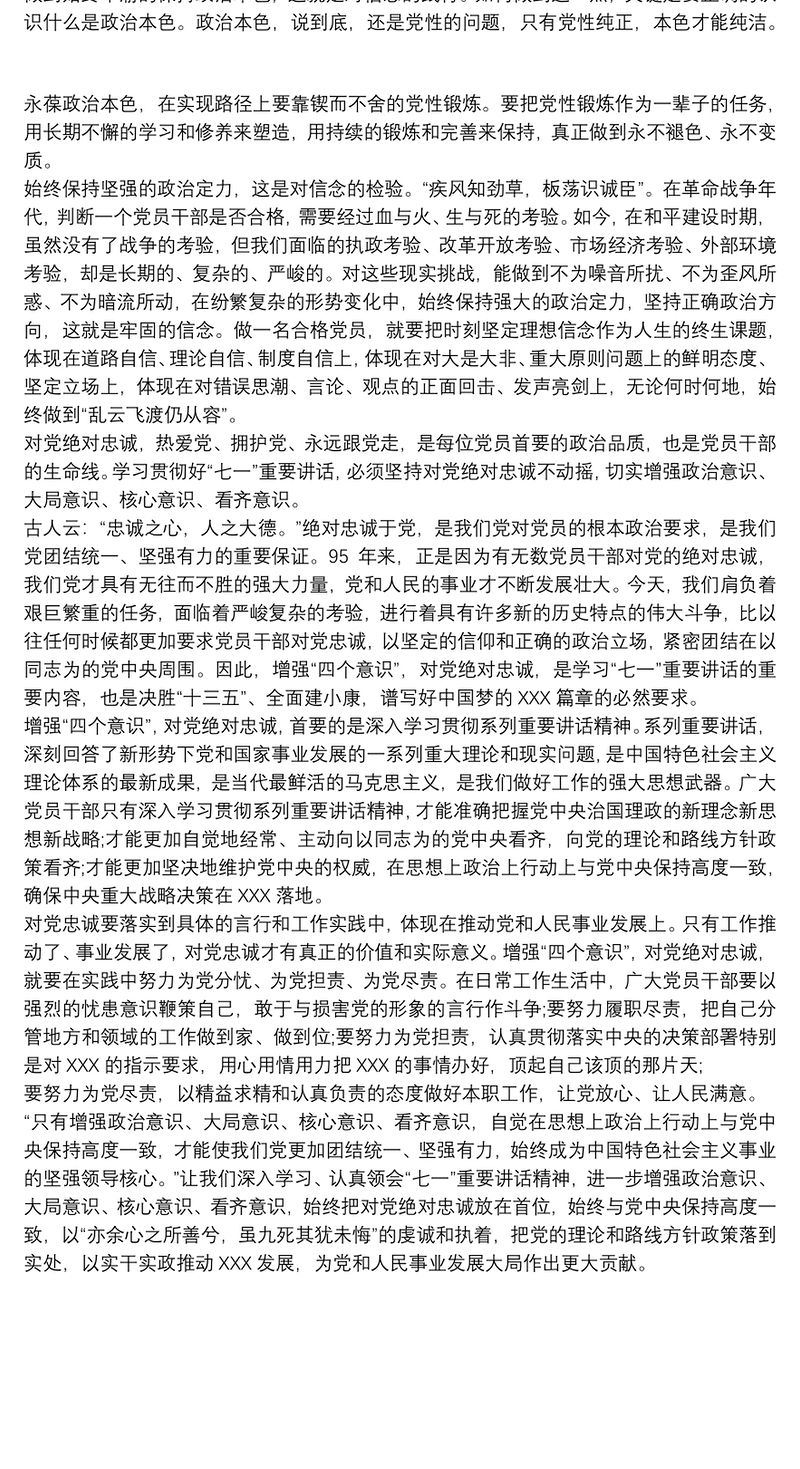 首頁 > WORD文檔 > 公文范文 > 對黨忠誠必講發(fā)言稿對黨絕對忠誠發(fā)言稿三篇.DOCX 【圖片、文字、動畫均可編輯】