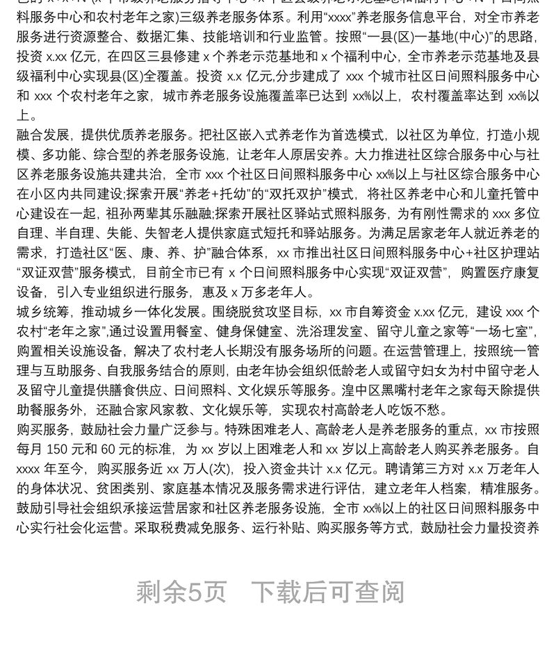 > 經(jīng)驗(yàn)事跡 > (5篇)推進(jìn)養(yǎng)老服務(wù)工作經(jīng)驗(yàn)交流材料、養(yǎng)老服務(wù)總結(jié)匯編.DOCX 【圖片、文字、動(dòng)畫均可編輯】