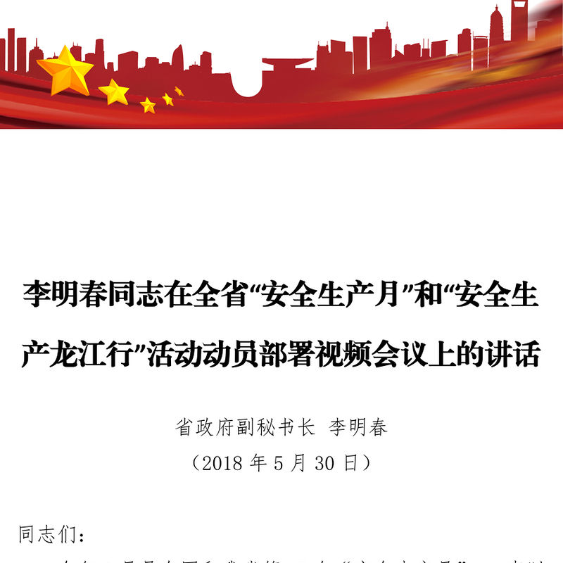 李明春同志在全省“安全生產月”和“安全生產龍江行”活動動員部署視頻會議上的講話,李明春同志在全省“安全生產月”和“安全生產龍江行”活動動員部署視頻會議上的講話 Array