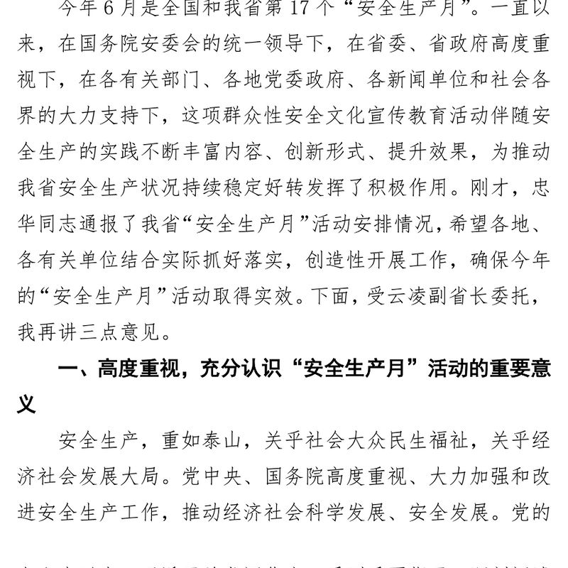 在全省“安全生產月”活動動員部署工作會議上的講話包含
