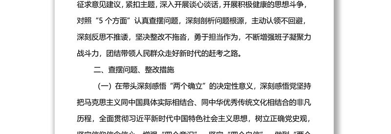 黨委領導班子2021年專題民主生活會問題整改清單包含