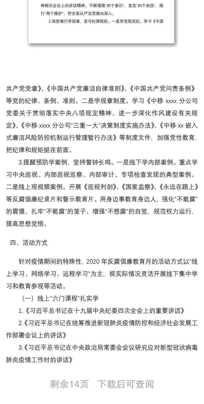 首頁 > WORD文檔 > 計(jì)劃方案 > 【5篇警示教育活動(dòng)方案】2020年反腐倡廉教育月活動(dòng)方案(集團(tuán)公司企業(yè)參考)(警示教育方案,反腐倡廉方案).DOCX 【圖片、文字、動(dòng)畫均可編輯】