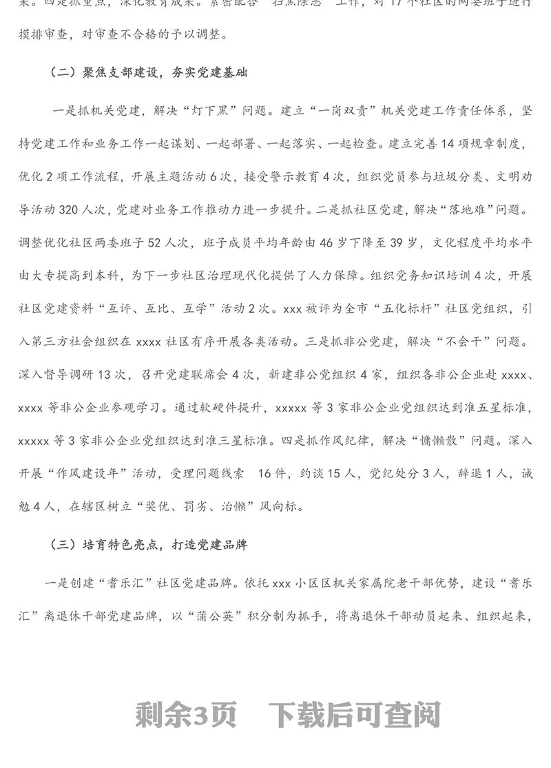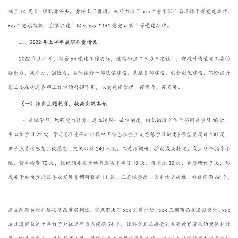 2022年上半年基層黨工委書記抓基層黨建工作述職報告