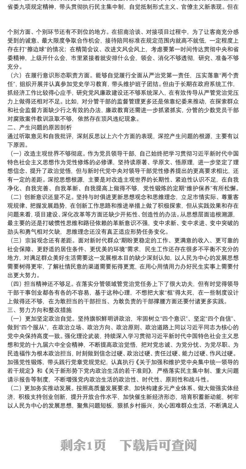 > 對(duì)照檢查 > 政府班子成員黨史學(xué)習(xí)教育五個(gè)方面專題民主生活會(huì)對(duì)照檢查材料.DOCX 【圖片、文字、動(dòng)畫均可編輯】