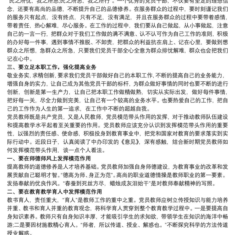 20xx年黨課講稿:黨員教師如何發揮先鋒模范作用3篇 Array