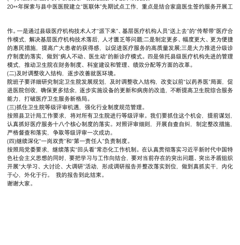 衛(wèi)生院院長個(gè)人年度述職報(bào)告