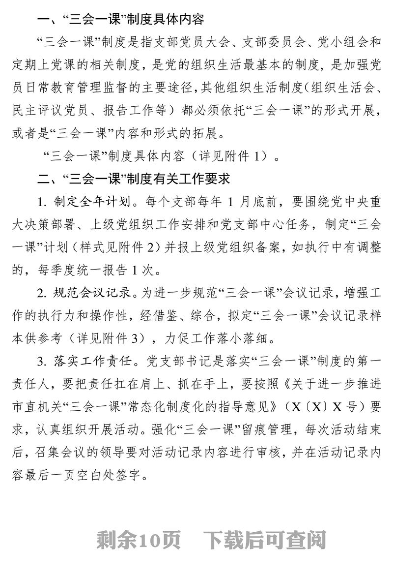 三會一課記錄機關黨支部規范落實三會一課制度工作方案包含
