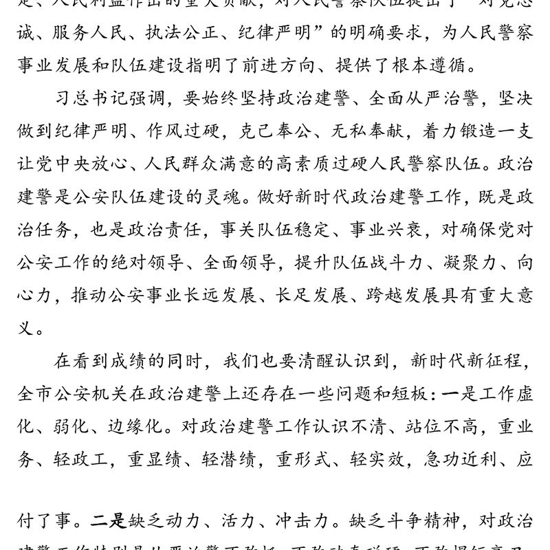 堅持政治建警首位首責全力打造忠誠干凈擔當的警隊鐵軍-在政治建警專題黨課上的講話