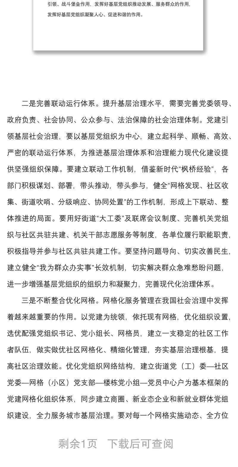 關于強化黨建引領提升基層社會治理能力和水平的工作匯報包含