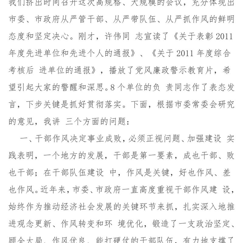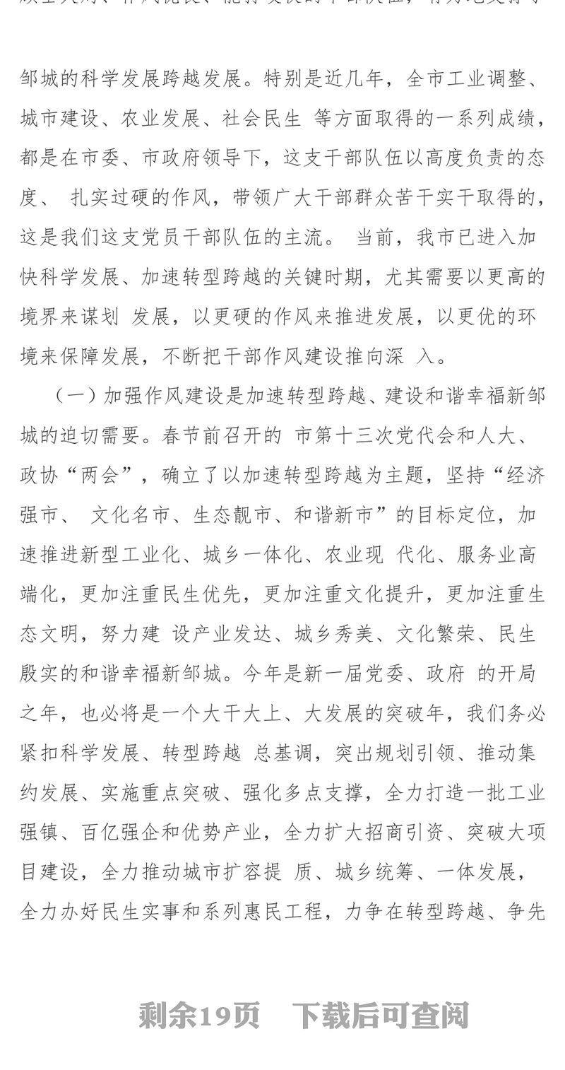 在全市干部作風建設大會上的講話