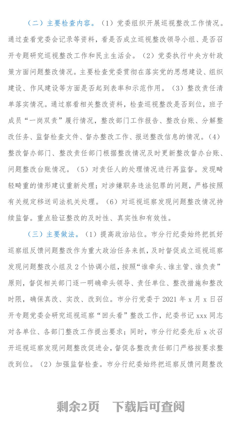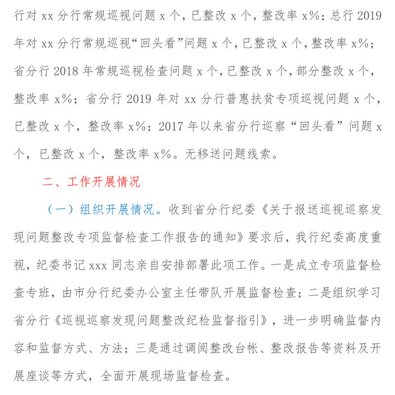 某銀行紀委巡視巡察發現問題整改專項監督檢查情況報告 Array