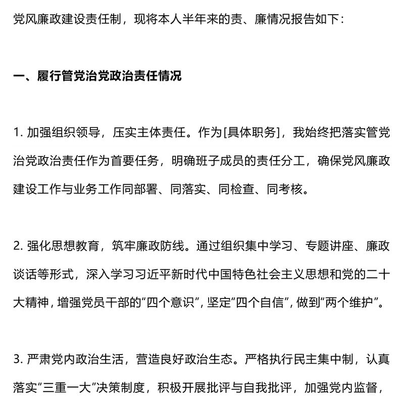2024年年中領(lǐng)導(dǎo)干部述責(zé)述廉報(bào)告PPT模板(講稿)