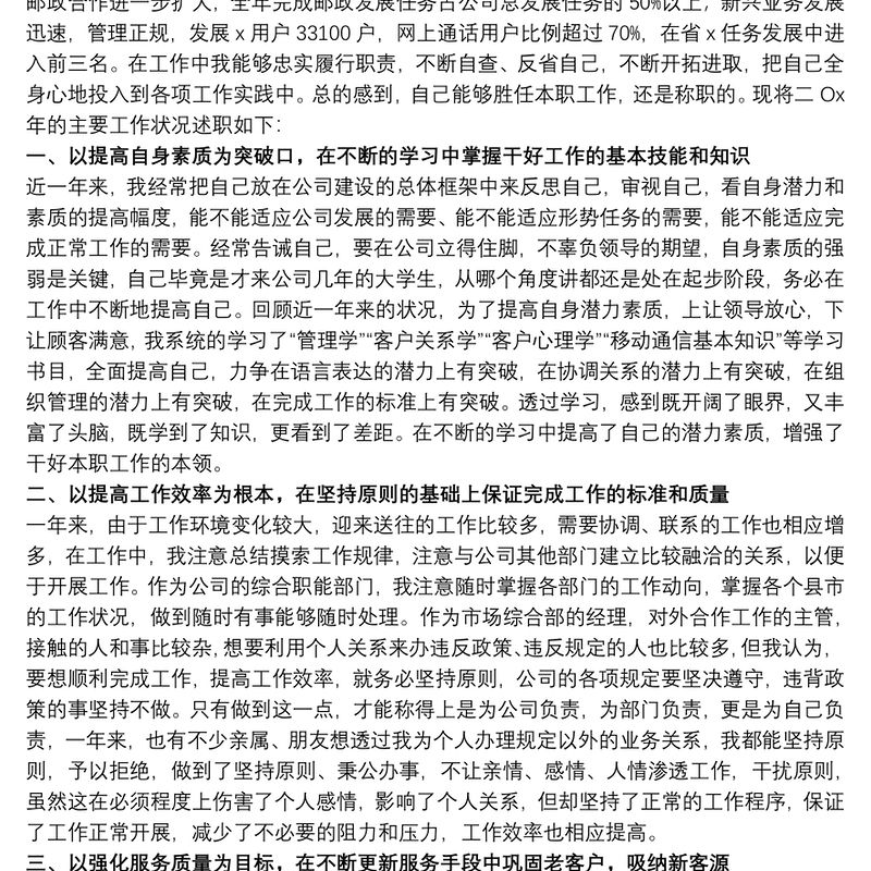 企業總經理工作述職報告精選模板包含