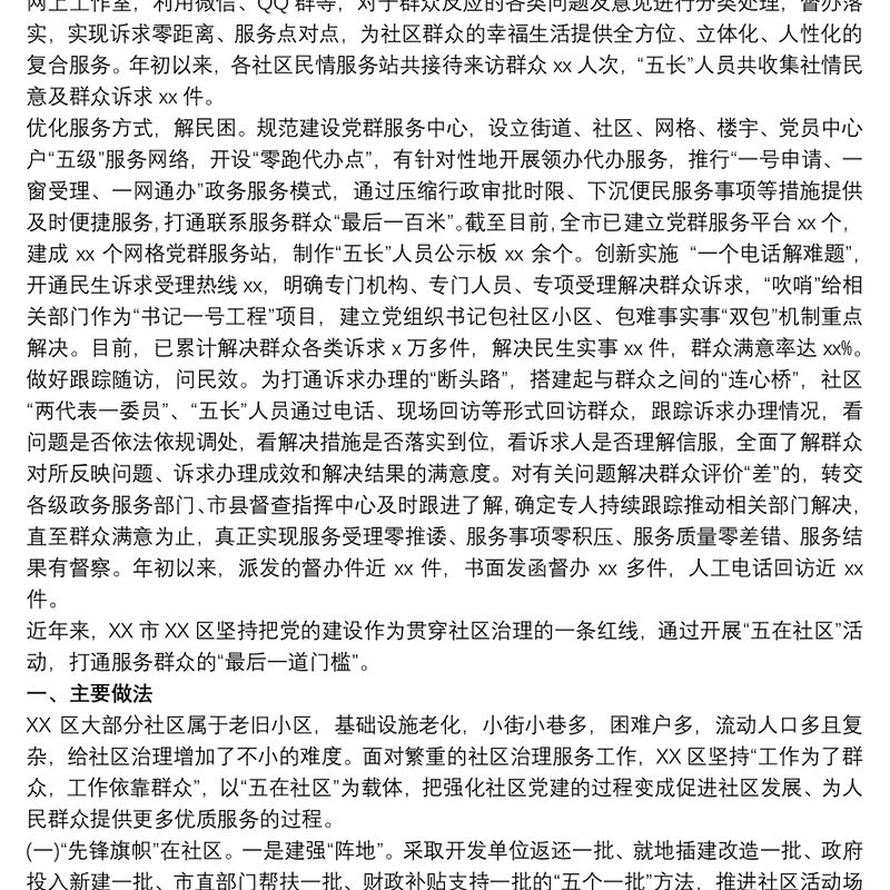 縣黨建引領社區治理提升基層服務工作情況報告包含
