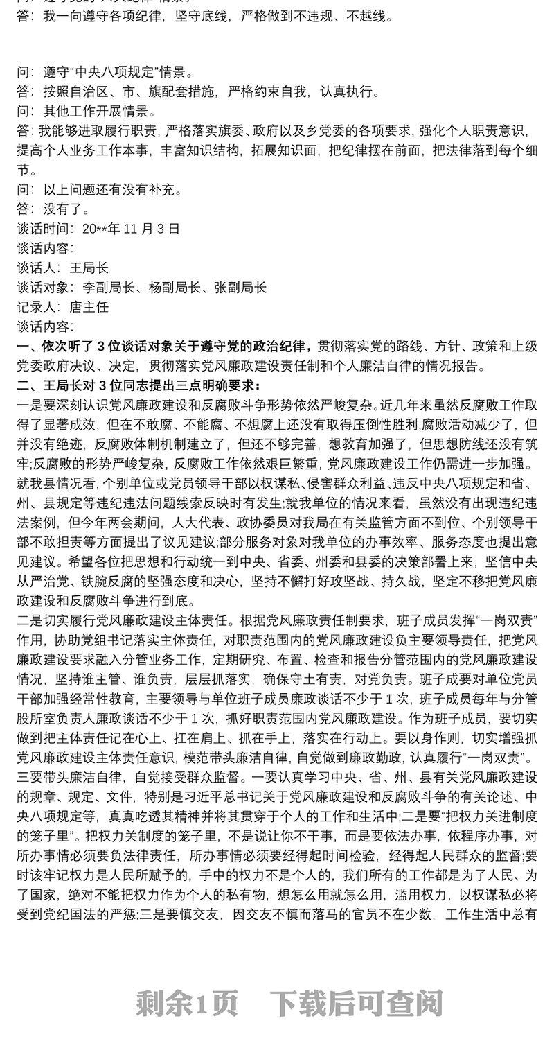 黨風廉政建設談話記錄黨風廉政談心談話記錄包含