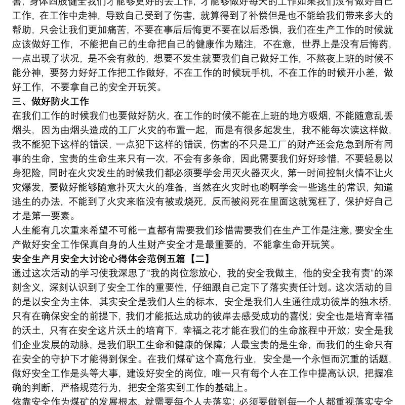 安全生產(chǎn)月安全大討論心得體會范例五篇