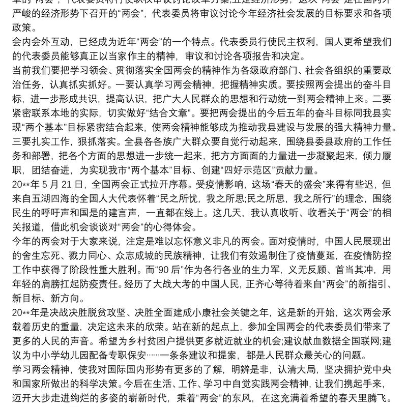 兩會精神學(xué)習(xí)心得體會2020 兩會精神的心得體會2020 Array