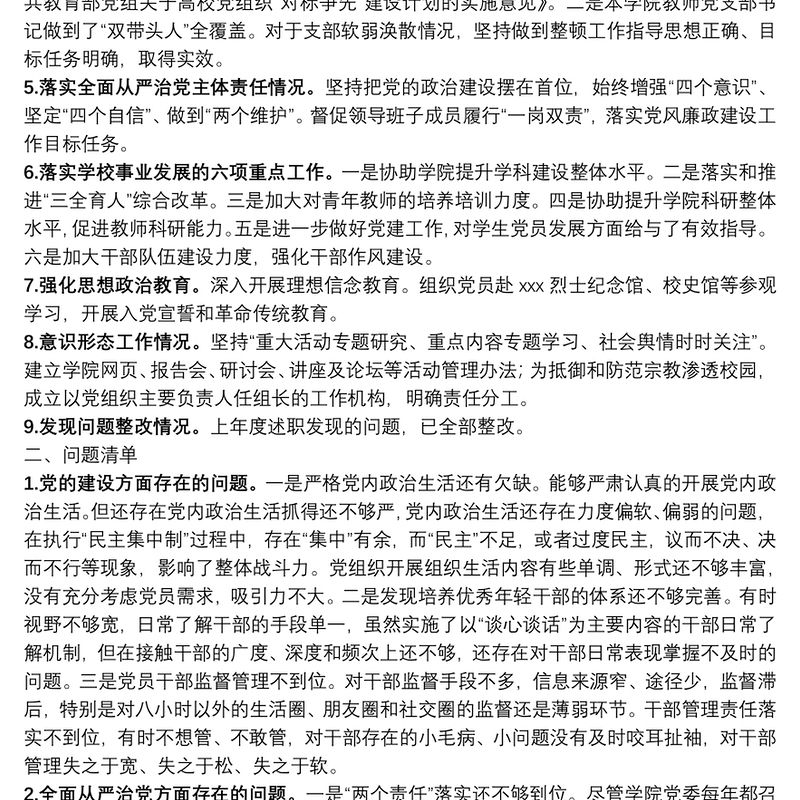 高校學院處級干部抓基層黨建和落實全面從嚴治黨主體責任述職述責述廉報告 Array