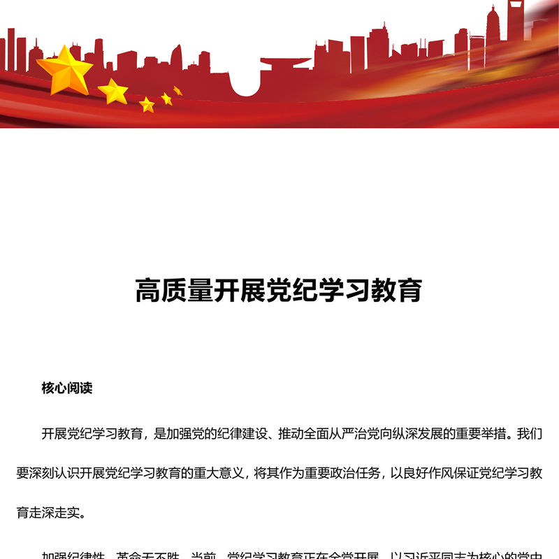 黨課講稿 > 創意簡潔風高質量開展黨紀學習教育PPT課件模板(講稿).DOCX