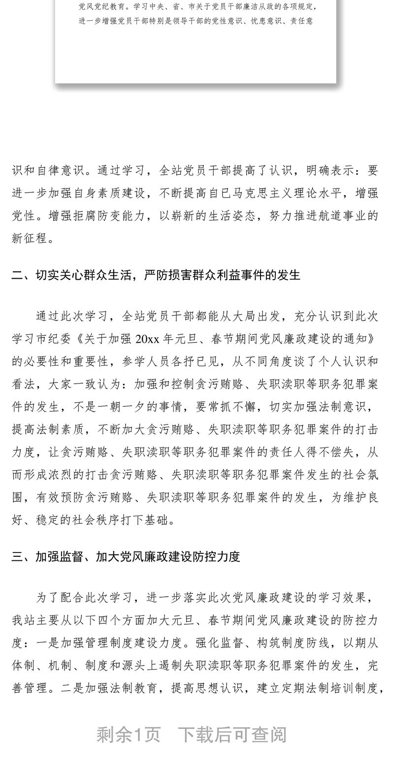 2021學習《關于加強元旦、春節期間黨風廉政建設的通知》的情況匯報