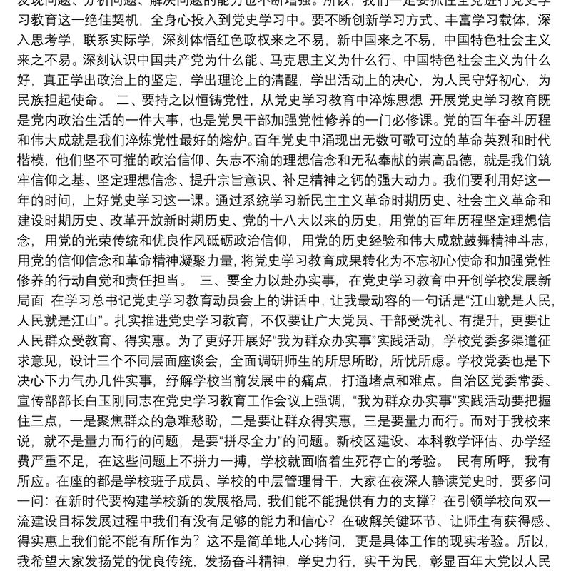 黨委書記在學校黨史學習教育專題讀書班上的講話 Array
