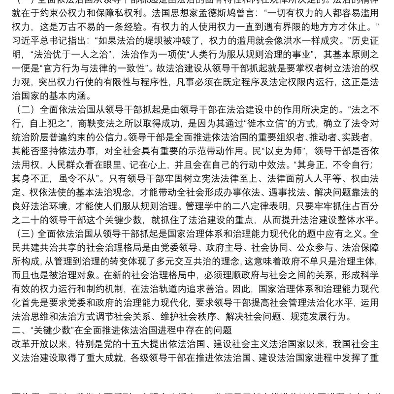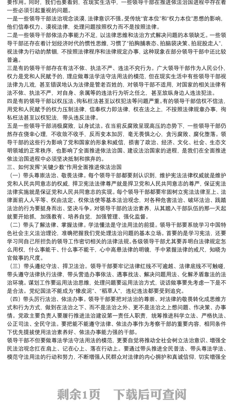公文范文 > 專題黨課輔導:全面依法治國務必要抓住“關鍵少數”下載.DOCX