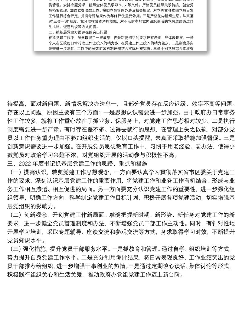 述職報告 > 區政府辦黨總支書記2021年度書記抓基層黨建工作述職報告.DOCX