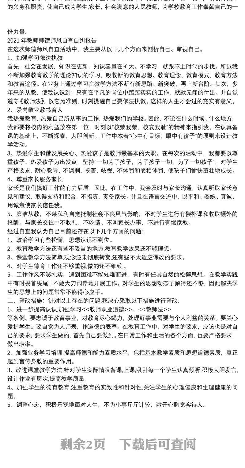 2021年教師師德師風(fēng)自查自糾報(bào)告