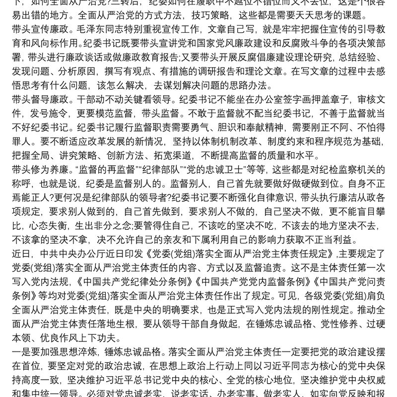 黨員干部學(xué)習(xí)落實全面從嚴(yán)治黨主體責(zé)任和監(jiān)督責(zé)任心得體會