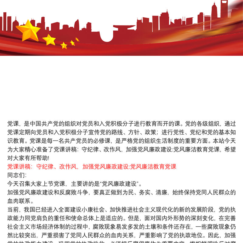 黨課講稿:守紀律、改作風,加強黨風廉政建設:黨風廉潔教育黨課 Array