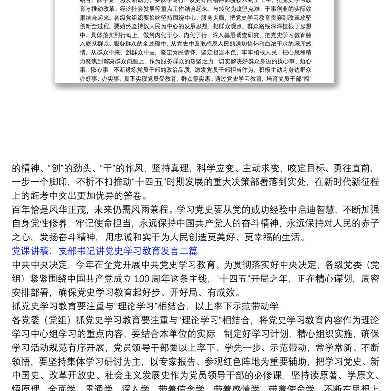 黨課講稿 > 【支部書記講黨史專題黨課講稿】黨課講稿:支部書記講黨史學習教育發言 三篇.DOCX