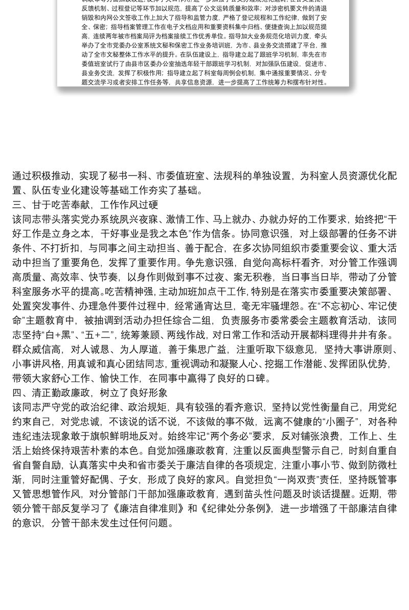 20xx年度擬提拔干部個人現實表現材料范文包含