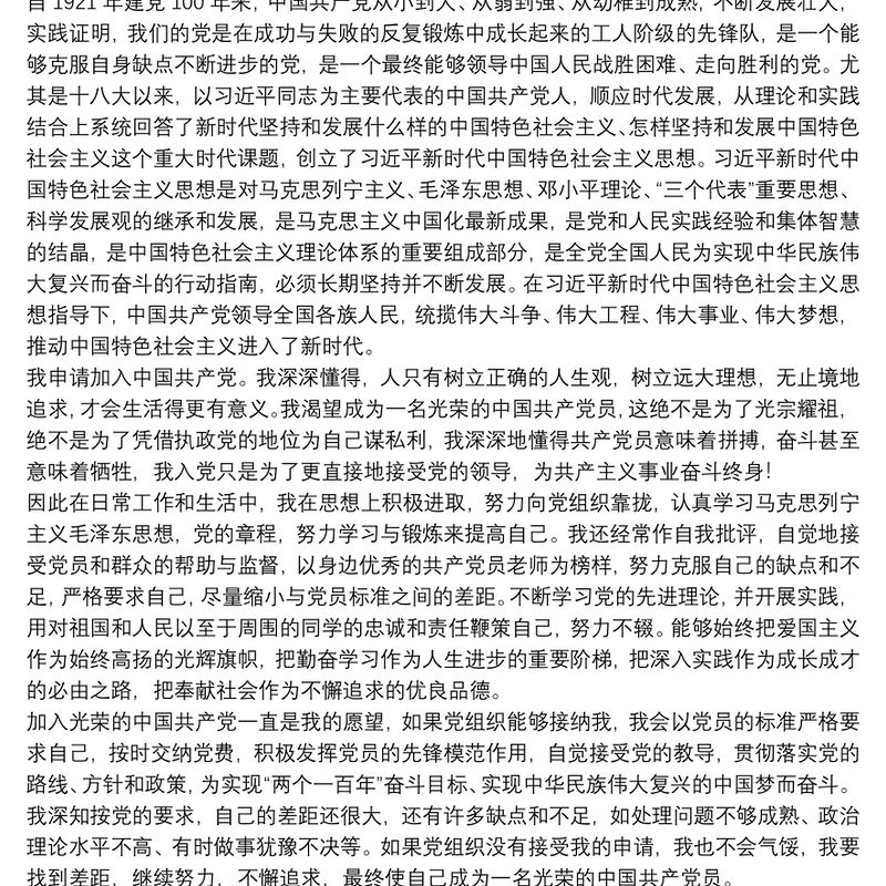 在校大學生個人入黨申請書