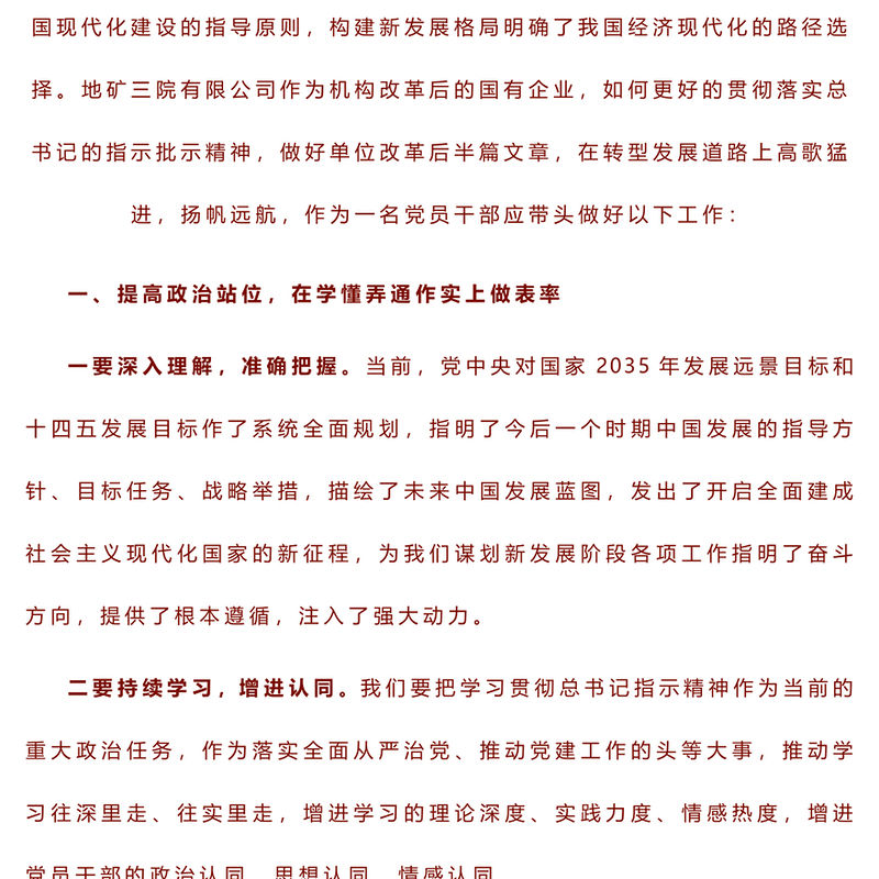 提高政治站位 把握發展方向 奮力爭先進位 在公司轉型發展中勇毅前行?——2023年主題教育讀書班交流發言稿 Array