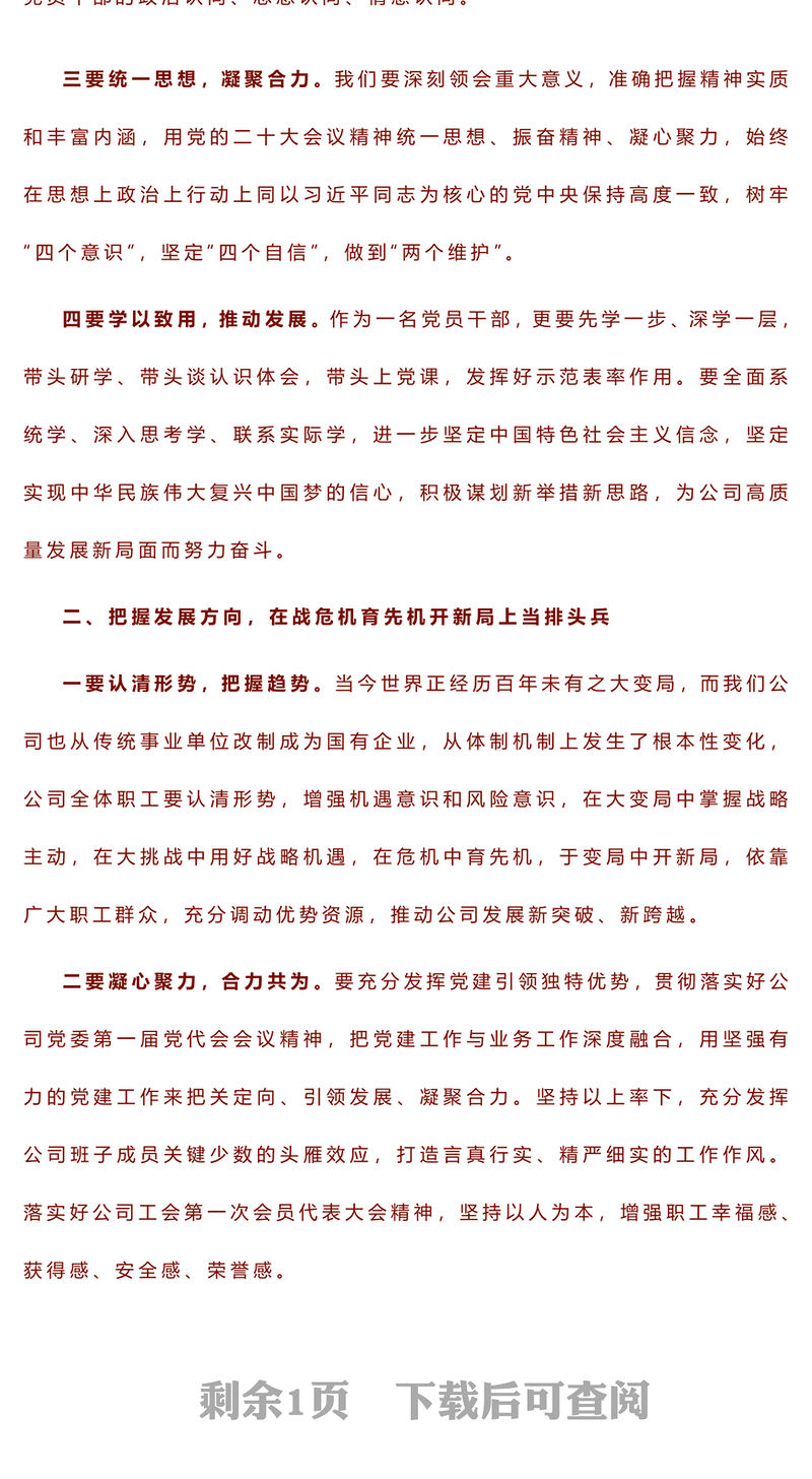工圖網提供提高政治站位 把握發展方向 奮力爭先進位 在公司轉型發展中勇毅前行?——2023年主題教育讀書班交流發言稿供會員免費下載。更多精彩黨課PPT素材,盡在工圖網。