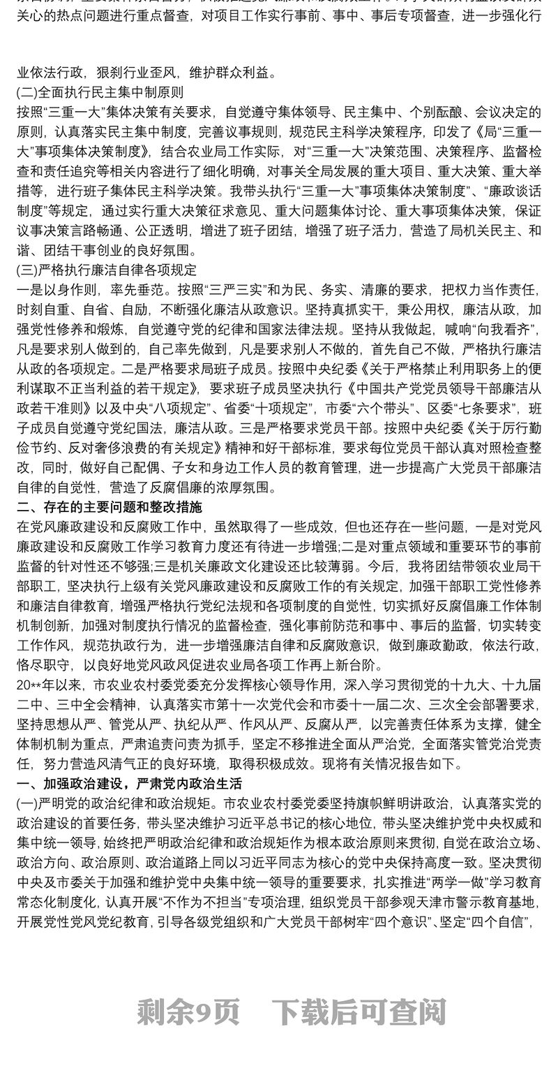 農(nóng)業(yè)農(nóng)村局局長履行全面從嚴(yán)治黨一崗雙責(zé)責(zé)任的情況報告 Array