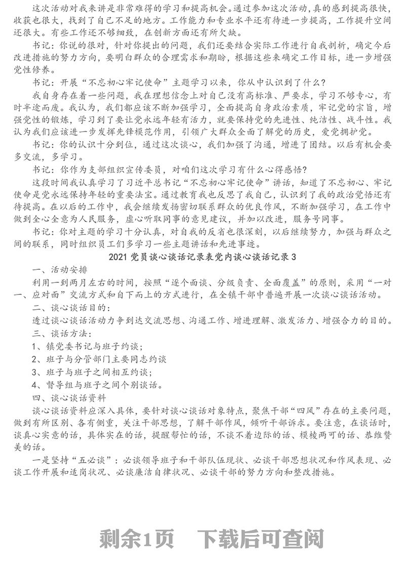 2021黨員談心談話 學(xué)黨史2021年學(xué)黨史黨員談心談話2021結(jié)合黨史教育黨員談心談話2022紀(jì)委書記與班子談心談話記錄2022黨小組長(zhǎng)與黨員談心談話記錄內(nèi)容2022黨員警示教育談心談話記錄內(nèi)容2022黨支部書記對(duì)支部黨員開展酒駕醉駕及黃賭毒八小時(shí)之外談心談話記錄民警黨員談心談話記錄內(nèi)容一對(duì)一20222021組織生活會(huì)黨員談心談話記錄材料醫(yī)生黨員談心談話記錄內(nèi)容一對(duì)一20222021年黨史學(xué)習(xí)教育組織生活會(huì)黨員談心談話記錄2022結(jié)合19屆6中全會(huì)精神開展黨員談心談話內(nèi)容轉(zhuǎn)作風(fēng)樹新風(fēng)作表率抓落實(shí)談心談話記錄內(nèi)容一對(duì)一20222022年社區(qū)黨支部組織生活會(huì)談心談話記錄內(nèi)容2022年組織生活會(huì)黨員談心談話記錄內(nèi)容2023黨員談心談話記錄內(nèi)容新時(shí)代中國特色社會(huì)主義思想