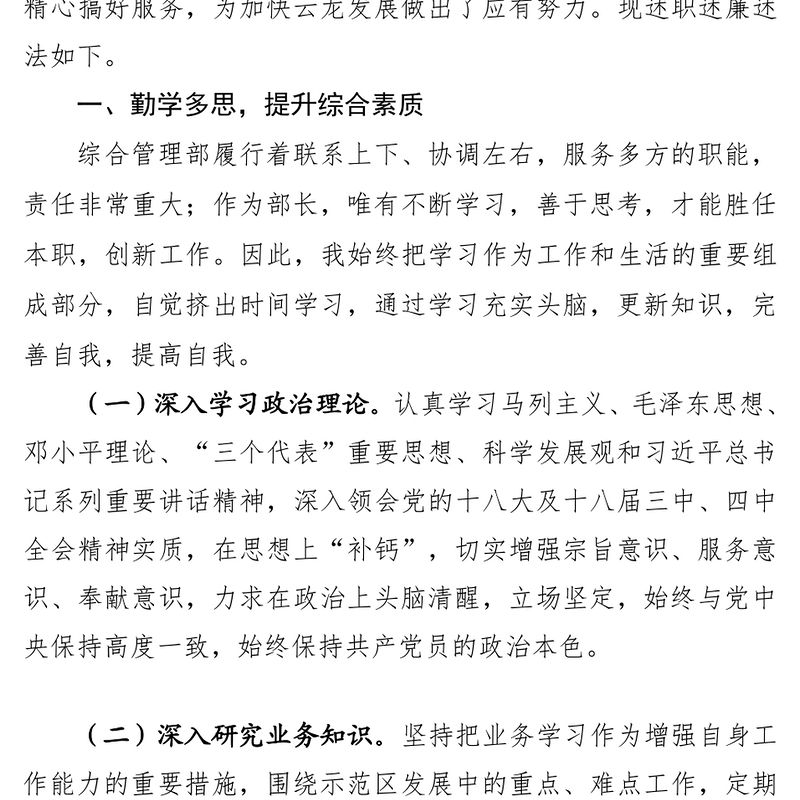 綜合管理部部長述職述廉述法報告