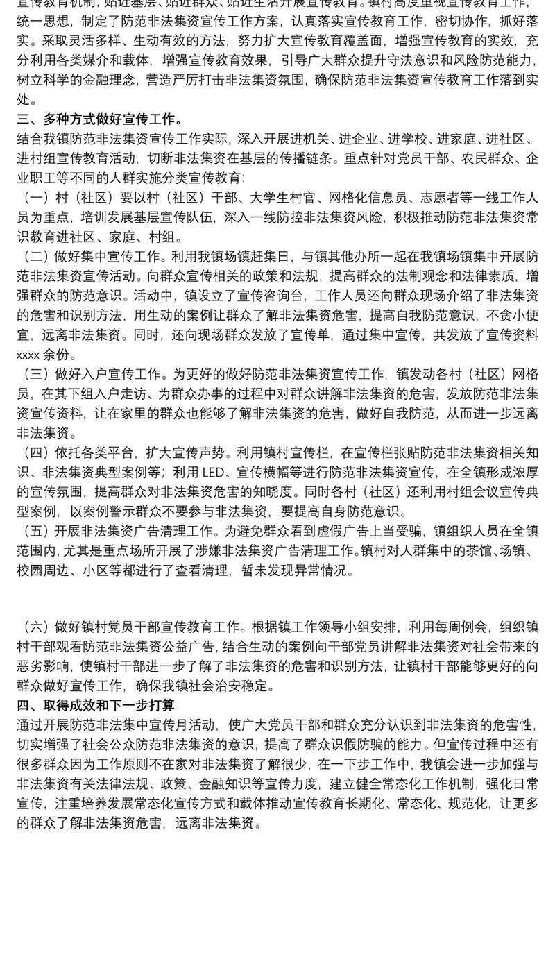 鄉(xiāng)鎮(zhèn)關(guān)于開展防范非法集資宣傳月活動(dòng)的工作總結(jié)