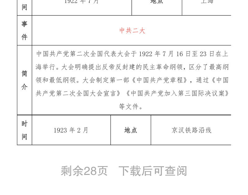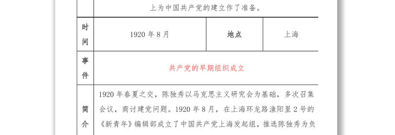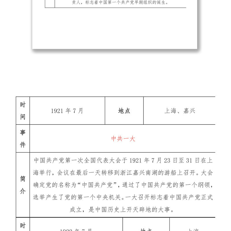 中共黨史大事記簡表包含