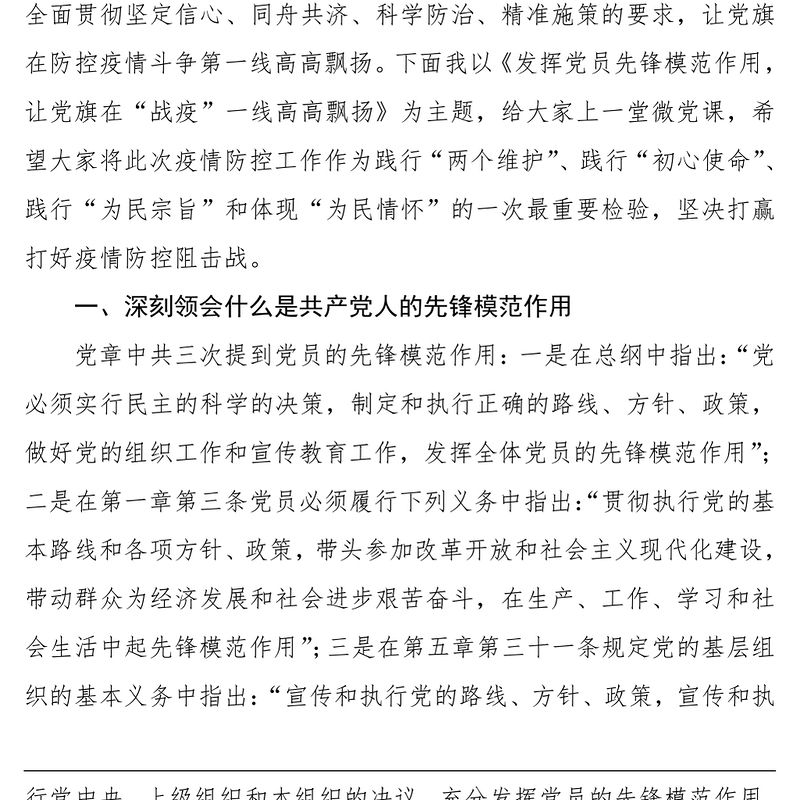 疫情防控黨課講稿:發揮黨員先鋒模范作用,讓黨旗在“戰疫”一線高高飄揚) Array